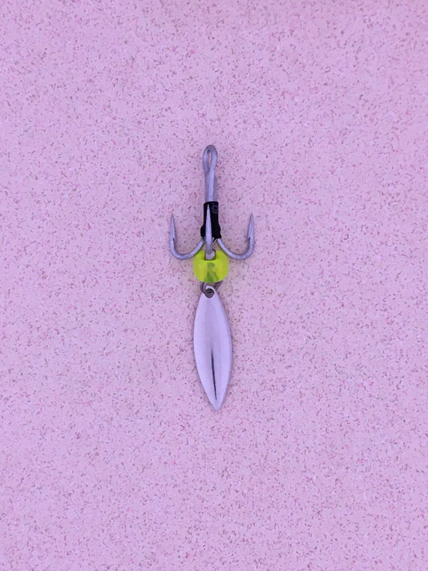 Bladed Hybrid Treble Hook with Chartreuse Bead- $3.49 Each